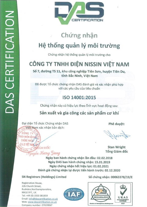 | Hồ sơ Công ty TNHH Điện Nissin Việt Nam | Tải về PDF |